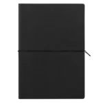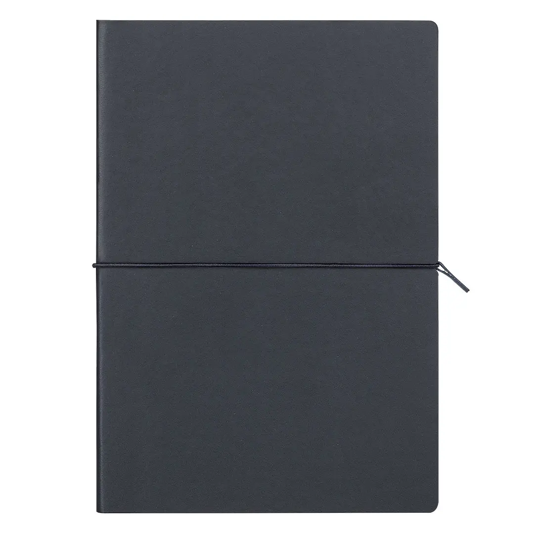 Description A5 notebook with rounded edges, flexible covers and elastic band